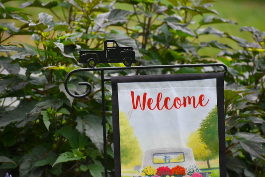 Small Garden Flag Holder With Wheelbarrow Cutout Design