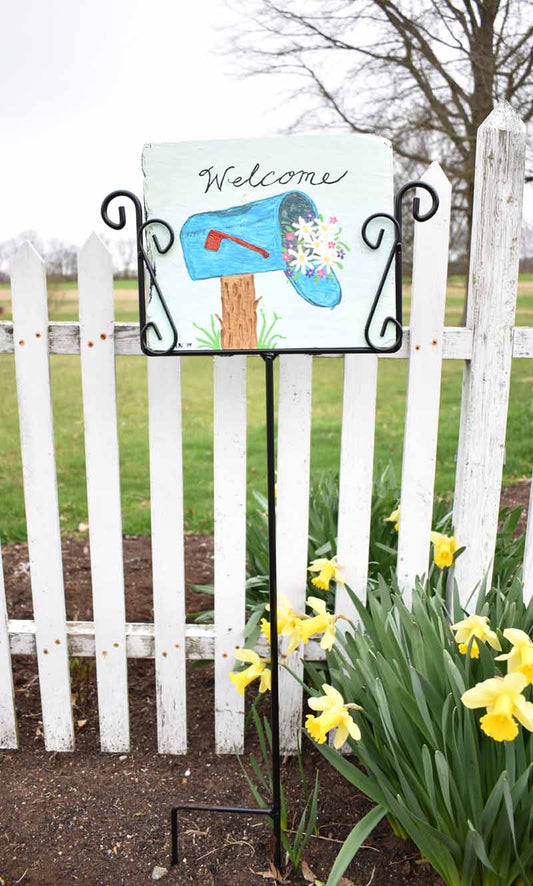 27" Tall Double Finial Slate or Sign Holder - for 8" Wide Slates or Signs